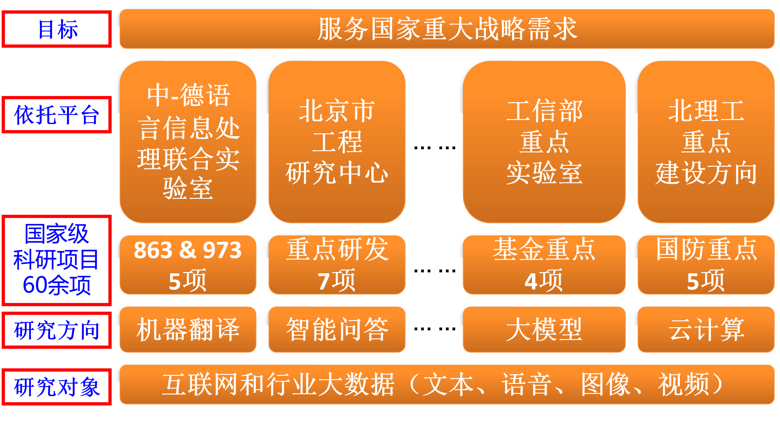 在科研方面,语言所围绕国家重大需求和国际前沿,进行广泛而深入的研究。近五年,研究所承担了30余项国家重点研发计划、国自然重点基金等科研项目,年均科研经费超4000万元。近五年,在包含TKDE、TOIS、AAAI、IJCAI、ACM SIGIR在内的国际著名学术期刊、国际会议上发表SCI/EI检索论文150余篇;在包含海量语言信息处理、云计算、信息安全等领域申请国家发明专利100余项,获批国家发明专利70余项;获国家科学技术进步奖二等奖、北京市科学技术奖一等奖、中国电子学会科技进步一等奖、国防科技进步二等奖等省部级奖励10余项。研究成果在自然语言处理、情报分析、社会计算、大数据分析等领域获得了广泛应用,尤其在智能文本分析、智能写作、情感计算和舆情监测等方面,为政府和企业提供了重要的技术支持。