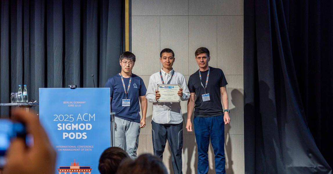 2025年6月,数据库领域全球顶级学术会议SIGMOD 2025在德国柏林落幕。经过激烈角逐,北理工pg娱乐电子游戏官网入口硕士研究生项黎明、封璟,本科生邵艺博、侯佳希以及来自西安电子科技大学的俞泳泽组成的Kirara队在秦宏超、李荣华、王国仁老师的指导下,获得了编程竞赛全球亚军(Programming Contest Runner Up Award),这是北理工学子首次参加该赛事。本次竞赛冠军由慕尼黑工业大学(TUM)团队夺得,清华大学团队位列第三。