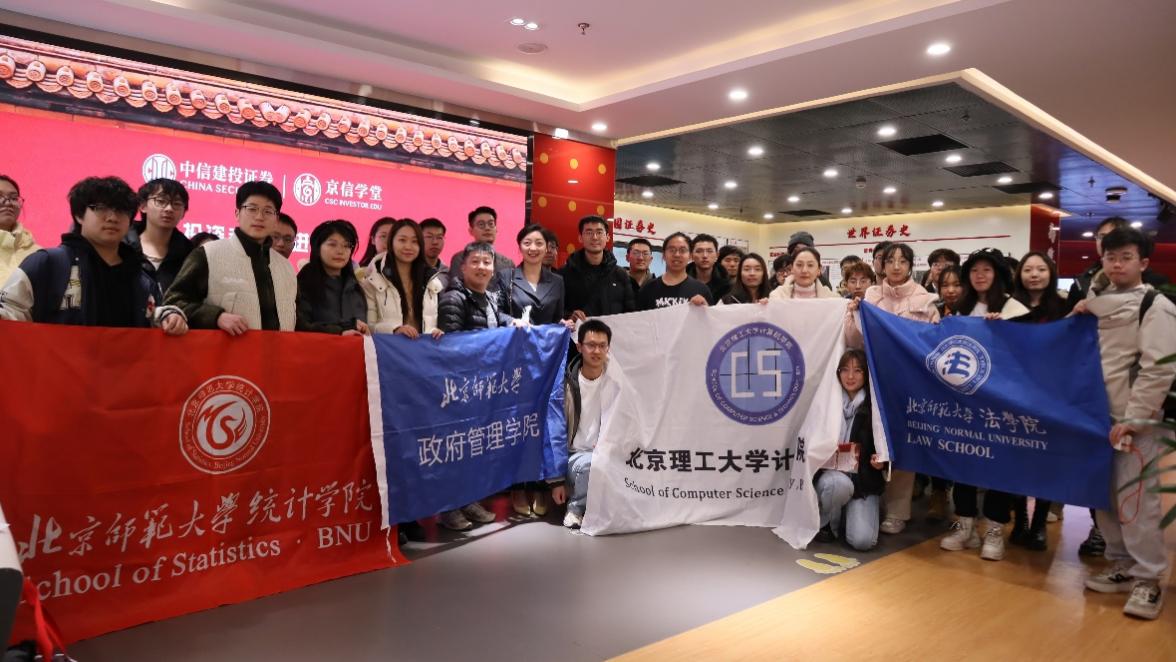 为进一步推进学生优质就业,搭建企业和学生面对面交流平台,畅通学生与企业的沟通渠道,pg娱乐电子游戏官网入口主动作为,搭建平台,组织策划“企业直通车”系列活动,带领学生近距离接触企业。12月16日下午,pg娱乐电子游戏官网入口联合北京师范大学统计学院、法学院、管理学院一同走进中信建投证券投资者教育基地“京信学堂”,开展实地参观学习。pg娱乐电子游戏官网入口就业干事杨毅、本科生辅导员温皓渊带队师生团队20余人参与了本次活动。